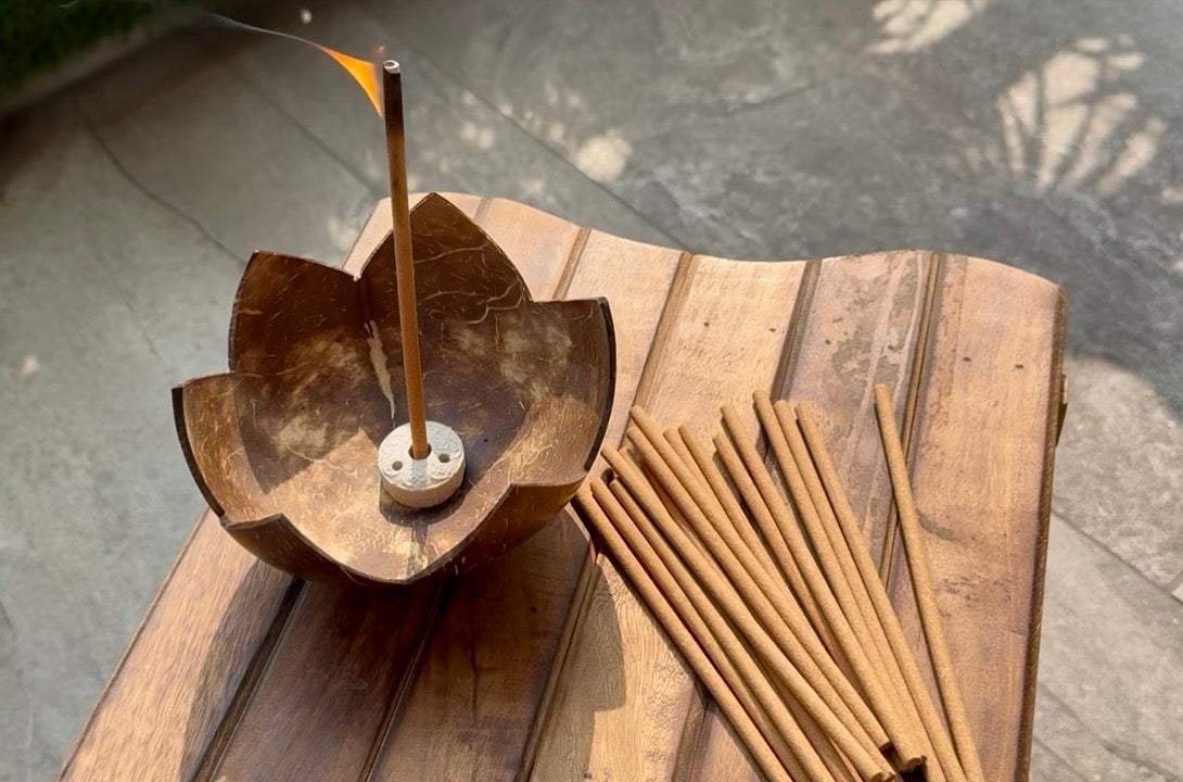 Designed with a built-in ash catcher, it keeps your surroundings clean while you enjoy your favorite incense fragrances. Each piece is unique, durable, and naturally finished, offering a sustainable alternative to plastic or metal holders.