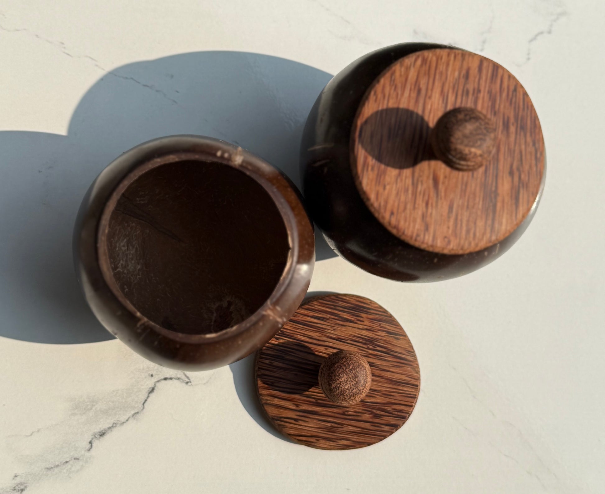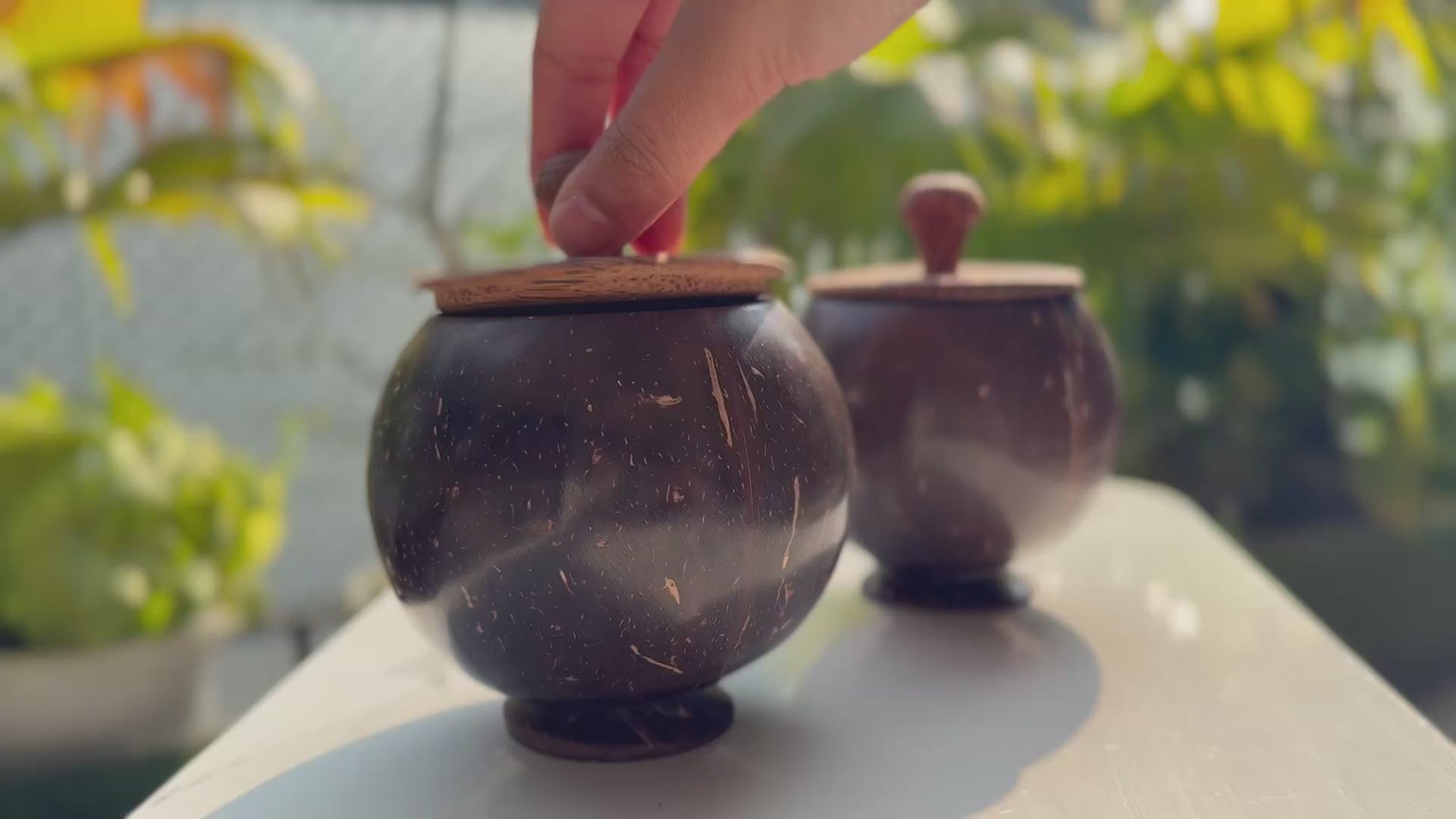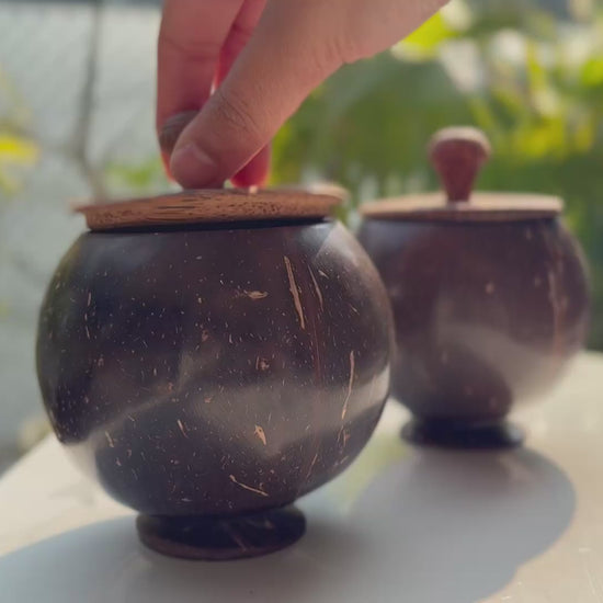 Bring nature’s elegance into your home with this beautifully handcrafted coconut shell storage jar, thoughtfully made from reclaimed coconut shells and finished with a natural wooden lid. Each piece carries its own unique grain and texture, making no two jars exactly alike.