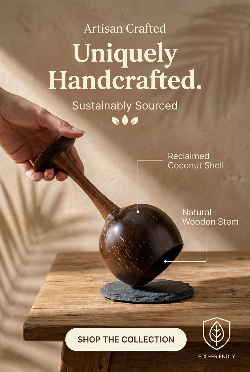 Elevate your wine experience with the Coconut Shell & Wooden Wine Glasses, beautifully handcrafted by skilled artisan. Made from reclaimed coconut shells and natural wood, these eco-friendly wine glasses are a stunning blend of sustainability, tradition, and modern design.